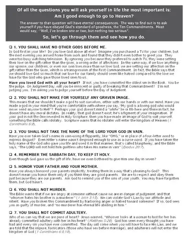 This is the latest new concept that developed after taking LivingWaters.com evangelism course and using their "Are you a good person?" comic tract. This compact visual tract includes the insights of Ray Comfort's many years of street evangelism. It leads them into the knowledge of the severity of their sin diseased condition before God so they can appreciate and receive the "Good News" cure.